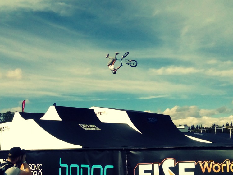 We can say we were there! FISE 2017! Hawrelak Park, Edmonton! Jon was a sight to see in his snapback and hoodie chillin with his BMX bros. The Edmonton audience, more well known for its hockey than its BMXing, seemed a little shocked to be hosting a round of the FISE World Championships. “Drop it like it’s hot!” was the strap line – more akin to something I normally do in the kitchen rather than the BMX moves on the ramps. Despite 3 sons in their 20s, one of which had a BMX bike plus ramps set up in the garden, and classing ourselves as not too ancient, the commentators spoke in what was a mysterious language to us. Apart from the references to sick trip 360 tail whips and windscreen wipers interspersed with Yo! Wo! No! and Bro!, we were also updated on which riders could party all night long and those that were “made of marble” (which I think means can wipe out on the park/ramps and get back on the their bikes and carry on as if nothing had happened).