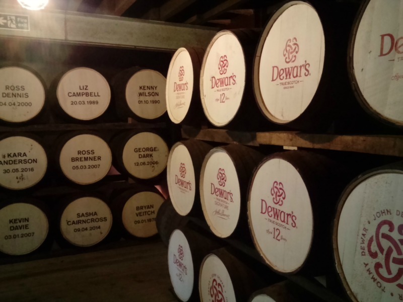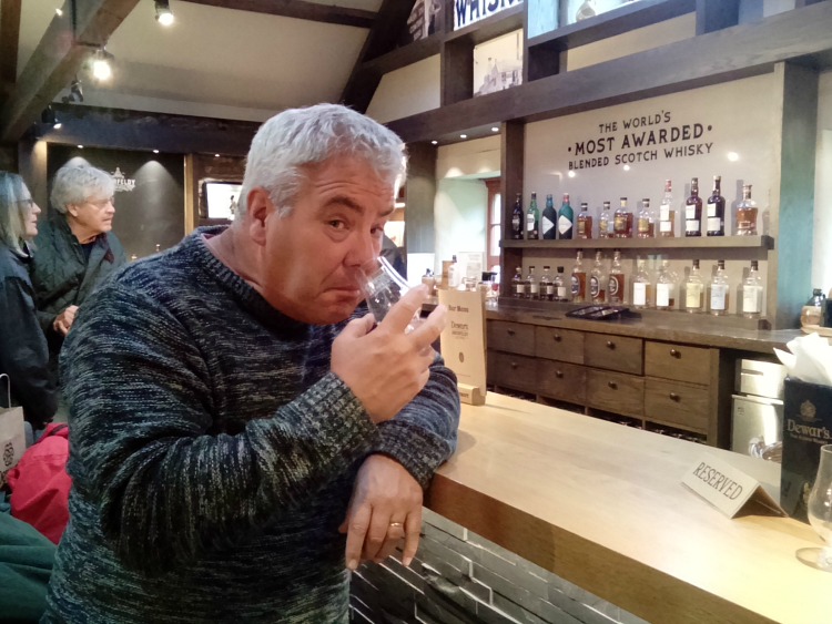 Our ticket included a whisky tasting experience. Stupidly we had arrived by car on our way home from the town so rather than abandon the car, I got a take-away goodie bag with miniature bottle of Dewar’s and some tips on mixing etc. The drink drive laws are much stricter than in England and I was impressed that they offered this alternative. Jon, however, had a private full on lesson on how to rotate, smell and taste the whisky. The chap was so patient with Jonno the Sassanach but I don’t think it rates as highly as a stein of Augustiner in his forthcoming “Top 10 alcoholic drinks” blog post.