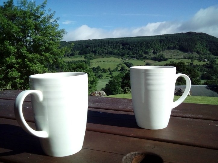 You may be wondering if we ever do any work with all this whisky tasting, walking and paddling. The answer is, OF COURSE!! The regular day starts with a hearty breakfast around 8am and after a quick look at emails we start doing what is needed. It could be cleaning one of the lodges, painting or gardening – all of which need us to be mindful of other guests who are on their jollidays and may want a lay-in. Although we haven’t had the crazy temperatures that England has encountered we have managed breakfast al fresco a couple of times.  Not a bad view to accompany your Rice Krispies.