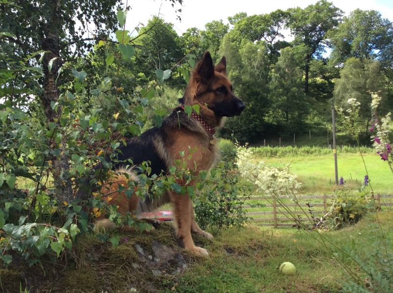 Just enough time to have a last game with Jon’s new best friend, Beauly, a three year old German Shepherd. Beauly had got used to coming and sitting just outside the caravan on the off chance of a ball game. After a few sessions, Beauly managed to train Jon that he needed two tennis balls. One each!! None of this throw, retrieve and drop business thank you!