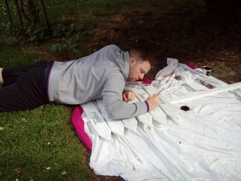 The cottage was brilliant for being able to spread out with all the DIY crafts and final preparations that were required. It was even better when newcomers arrived to lend a hand. The trade off was to do some crafty stuff then swim – we may even feed you too!