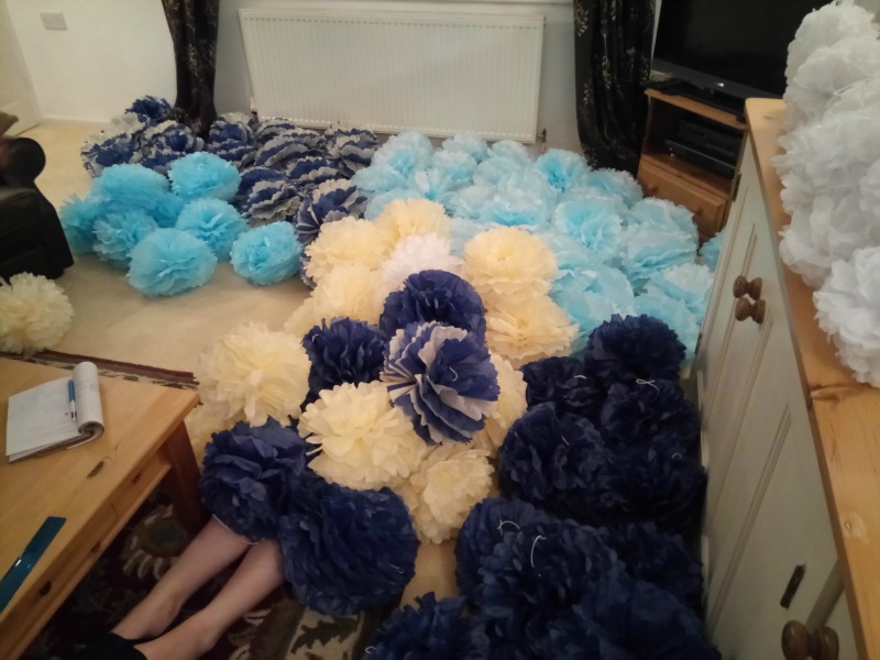 Jonno and I are now venturing into wedding venue preparation. In fact we have one booking already in October…do you think they need pom poms?