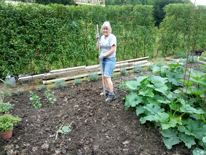 The first few days found me fighting the rampant elder and weeds that had invaded a large flower bed and the vegetable garden. Luckily I could see the difference a few hours had made and felt I had earned a hour on the garden bench with my book.  Jon spent the first few days removing quarry tiles from the kitchen floor. As always he worked in a tidy fashion, although after three days he was walking a bit like Quasimodo.