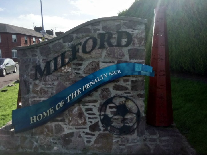 Just outside Armagh is a tiny little village, well more of an estate, called Milford. There isn’t a lot there to be honest except for small green in the midst of a new housing development with a memorial and a plaque. Amazingly, this was where the Penalty Kick was invented! Back in 1889 William McCrum, goalkeeper for Milford FC, appealed to the Irish FC to include a new law for penalty kicks and the rest is history. He has a lot to answer for. England may have done so much better at World Cups without the dreaded penalty shootouts. Thanks McCrum!
