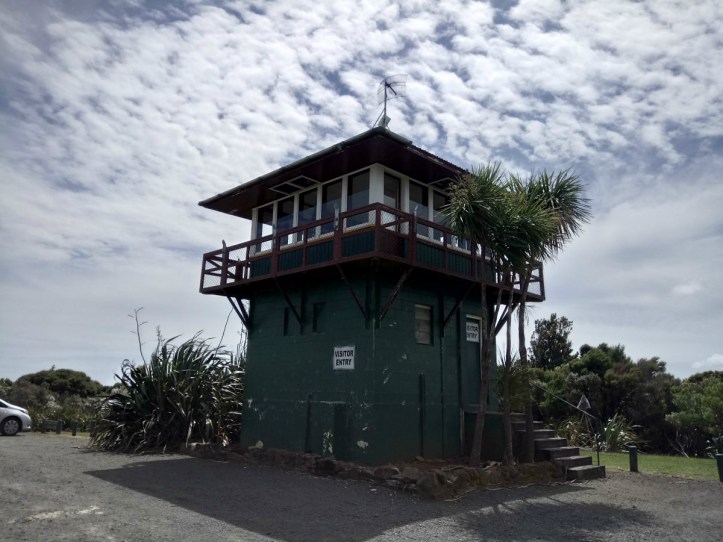 Let me tell you a story….once upon a time North Island was covered in dense forests of Kauri trees. There were over a million hectares of forest but today there are barely 4,000, the rest felled for timber or cleared for farming. From the mid 1800s Kauri became the preferred timber for shipbuilding because it is long, straight, evenly grained and free from knots. It’s gum was also prized for use in paints and varnishes and the process of “bleeding” Kauri for their gum hastened the early death of many trees.  Our drive up the west coast took us through the Waipoua Forest which is the largest remnant of the once-extensive forests. 18km of curving roads took us through dense sub tropical  forests. A few kilometres into the forest I spotted a sign that said “Forest Lookout” and shouted “Turn left” to Jon. He reacted with lighting speed and threw little Yantze (the Toyota Yaris) onto the track. Track not being quite the right description. It was more like the tarmac had all been dug up and just left laying there with about 6 inches of gravel chucked on top. Yantze was game but Jonno had a look of pure fear on his face because of the angle of the incline and the drops on either side of the road. Has he never seen Top Gear? This was his chance to really off road. Thankfully he took it fairly steady because poor little Yantze is built for shopping in the suburbs not sliding sideways around hairpin bends. After about ten minutes we arrived at said lookout. My mistake – I thought it was going to be a terrace or something to view the canopy of the forest from on high. It was, however, a small lookout tower. Like something you would use to use as a fire watch location.