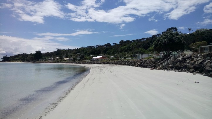 The crystal clear waters where fringed by pure white sand. It was challenging Maitai’s number one position. A walk along the water edge, exploring some rock pools and generally just being lazy came easy here. On our return walk we saw a sign at one of the holiday apartment offices for ice creams, coffee etc. An ice cream was definitely a good plan but we were called over by a guy with an English accent who said that the apartments and shop were closed until December when the holiday season really kicks off. Shame…… It turns out that the guy was ex-police from Nottingham and had moved over to New Zealand 8 years ago. He was now in the NZ police force and ran the holiday apartments as well. Quite a change to being on the beat in Nottingham. I don’t think there is much pure white sand there!
