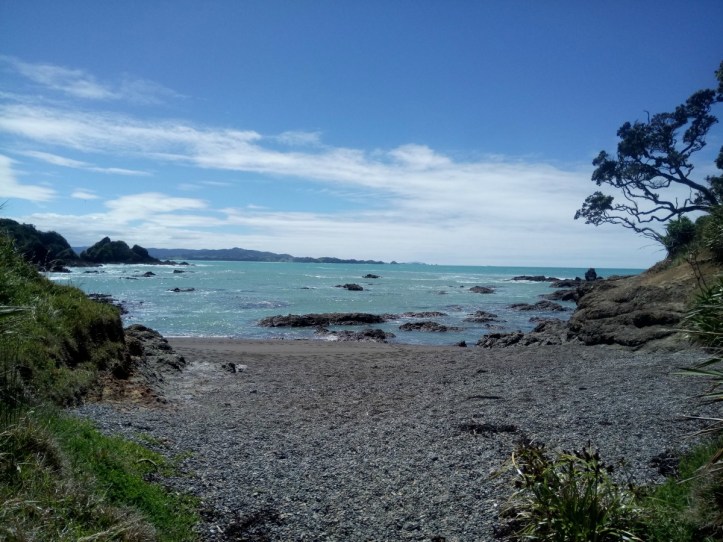 That just left two more stops on our loop. The first of which was Matapouri Bay. This was a long sandy horse shoe beach with a couple of tracks leading off of it to other secluded inaccessible beaches. Having decided that the tide was going out, we waded through knee high seaweed and over some fairly sharp rocks to access the very different Pebble Beach. I managed to split my little toe open at one point and left a trail of blood behind me as we headed to the track. It didn’t look too bad so I took the natural approach and let the salt water work it’s magic. Hard to believe that these beaches were only about 200 metres from each other.