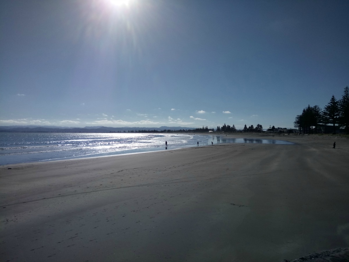 Then, of course, there was the beach. It was around a 20-25 minute walk from the house. The end nearest the town faced the port which seemed to have every tree in New Zealand on the wharf waiting to be transported/exported but in the other direction it was a long stretch of golden sand. Decisions, decisions, pool or beach? Maybe we will just do both each day!