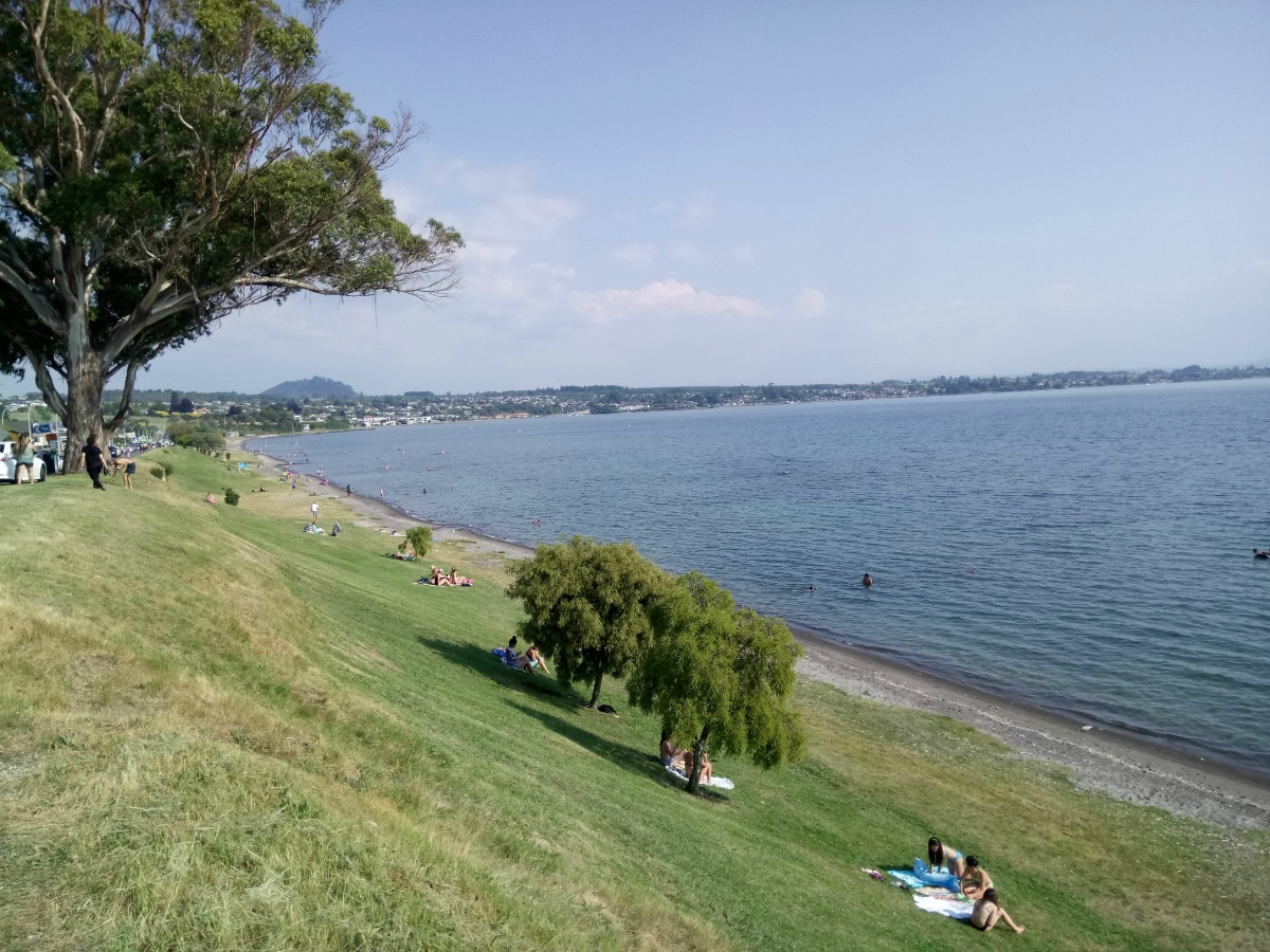 A short drive along the lake we parked up and took a walk down through the trees to Whakamoenga Point. It was a picture perfect day and we sat for a long while watching the kayakers, sail boats and swimmers. Another short drive brought us to Upper Acacia Bay (also know as Blue Ridge) where the properties were way bigger and way more exclusive with panoramic views across the lake.
