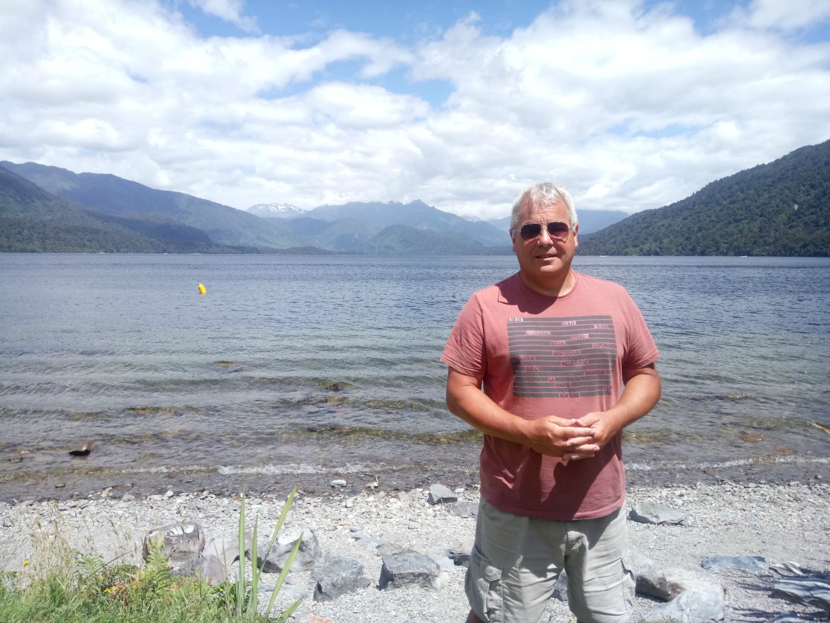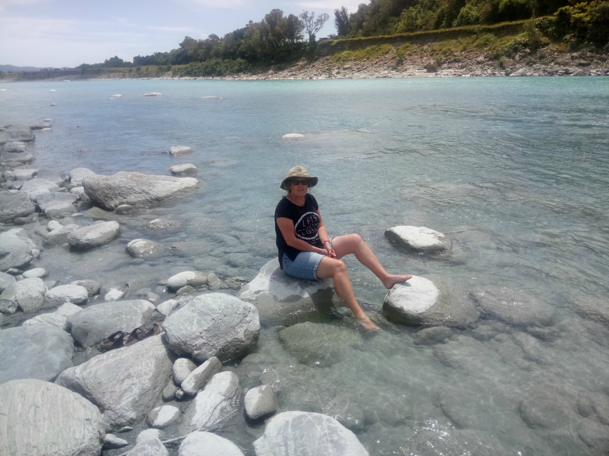 It  was about a ten minute walk through the forest and over a swing bridge to the gorge. The colour of the water was hard to believe. A turquoise like no other caused by rock flour is is ground down glacial rock which is so fine that it is suspended in the melt ice giving a milky translucent colour.  There were a few people making a leap of faith into the waters below but it was risky. The water level compared to winter was fairly low, there were hidden boulders below the water line and it is ice melt water so shockingly cold. After some people watching and sitting in the sunshine, we headed off to our lunch location – Lake Kaniere.