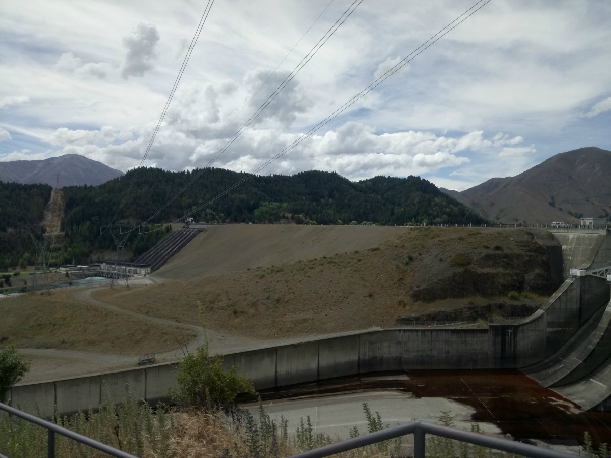 The road followed the course of the river inland and we passed the first of three dams, Waitaki Dam. At the viewing area we realised that we could drive over the second and third dams. So a diversion was planned. Drive over the second dam, Aviemore Dam, drive along the north side of the lake and then return to the south side at Benmore Dam. It was a scenic drive and much more interesting than the main highway plus we got to drive over the largest earth-filled water-retaining structure in New Zealand. Bet you’re impressed now!
