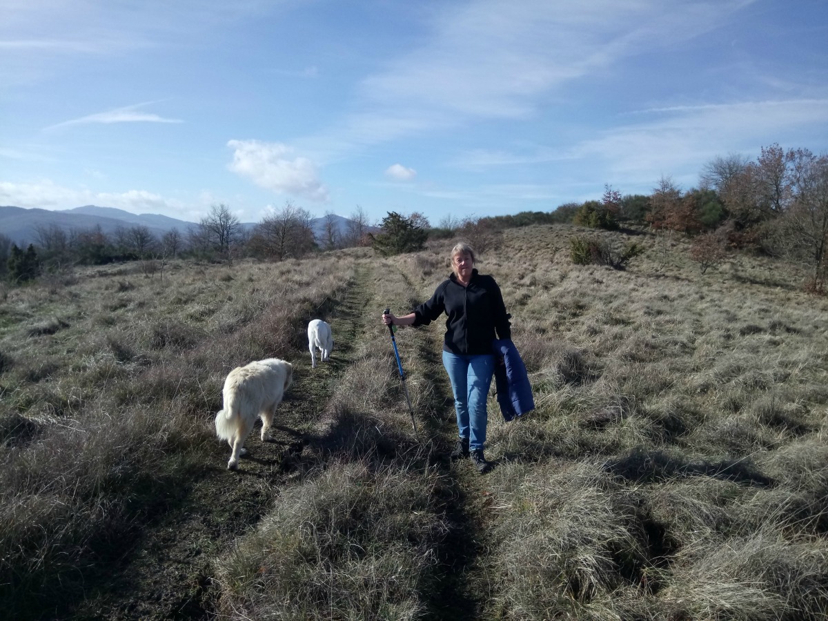 Our first week here has also included a couple of morning walks with Vinnie and Lady right up to the top of the hill and along the ridge. The weather hasn’t been that great so far so it’s fairly muddy still but we’ve brought our boots and heavy coats so not a problem at all. It was great to meet their friends Sally and Simon out walking their own dogs and also get to know Gary the Builder during the week.