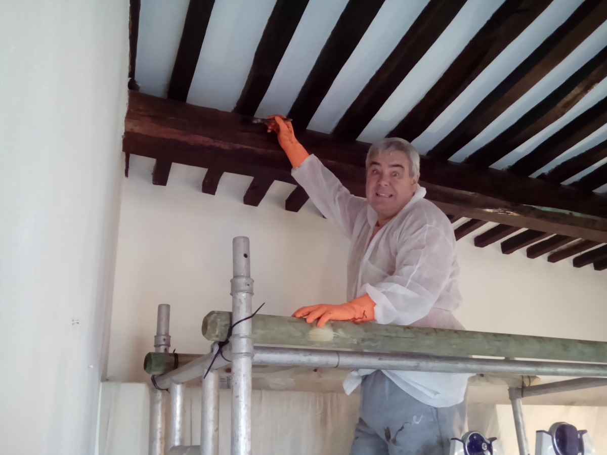 Our initial work here was decorating the smaller apartment. It’s high vaulted ceilings and stone walls looked amazing but needed a bit of TLC before the summer started. So lots of wood-staining, preparation, emulsioning etc kept us busy all week long. It was especially tough as the super-high ceilings meant I had to get up on a scaffold tower to do everything. Real tough work all week but we were rewarded each day with some incredibly good meals from Gilly and spent many hours relaxing and socialising in the evening as we all got to know one another more and more.