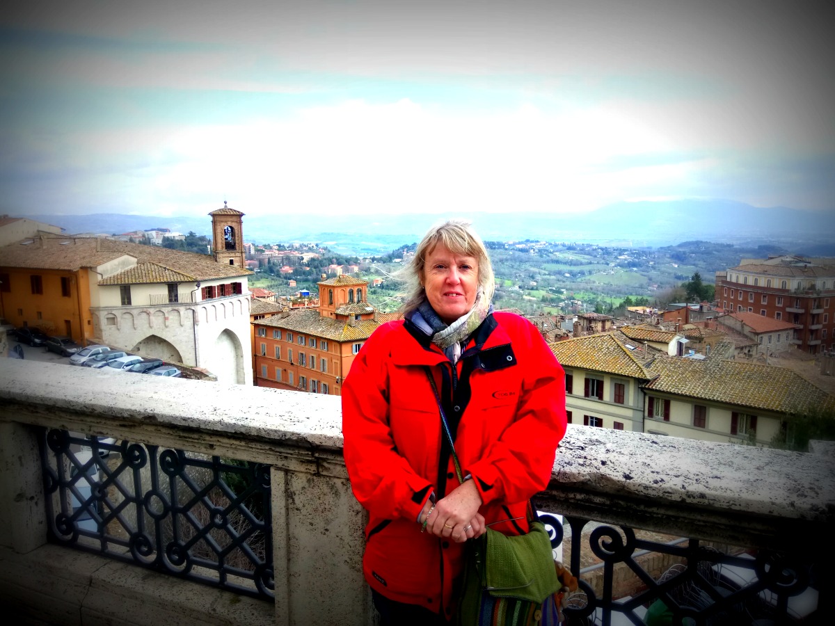 Sitting outside the museum watching the world go by was just fabulous and made us appreciate just how much we really appreciate these days out exploring new locations. It was sunny but still very cold so we headed down the main street Corso Vanucci through the Piazza del Republica  to the lookout at Giardini Carducci. The views south of the city were amazing, we could make out the famous city of Assisi on the slopes of Mount Subasio.
