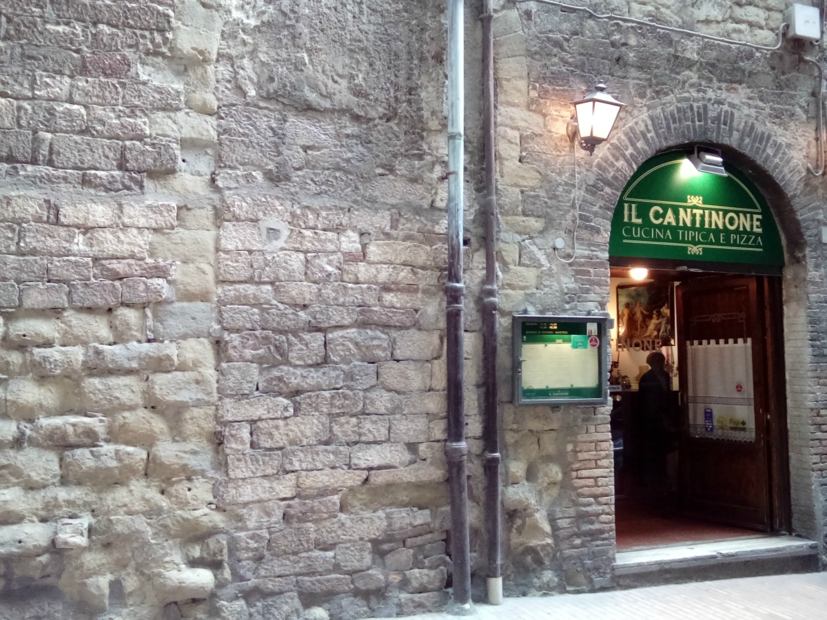 At the top of more stairs was a tiny little doorway to the Il Cantinone restaurant. We’re not really ones to go to restaurants or eat out a lot but we really felt like spoiling ourselves and it turned out to be a great little place. A glass of local wine and beer and two huge pizzas, tuna for Jo and sausage and potato for me, were perfect. Great atmosphere, great company, and we really felt like we were pushing the proverbial boat out even though it was fairly inexpensive.