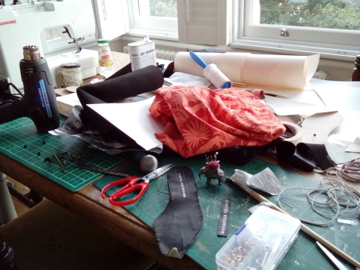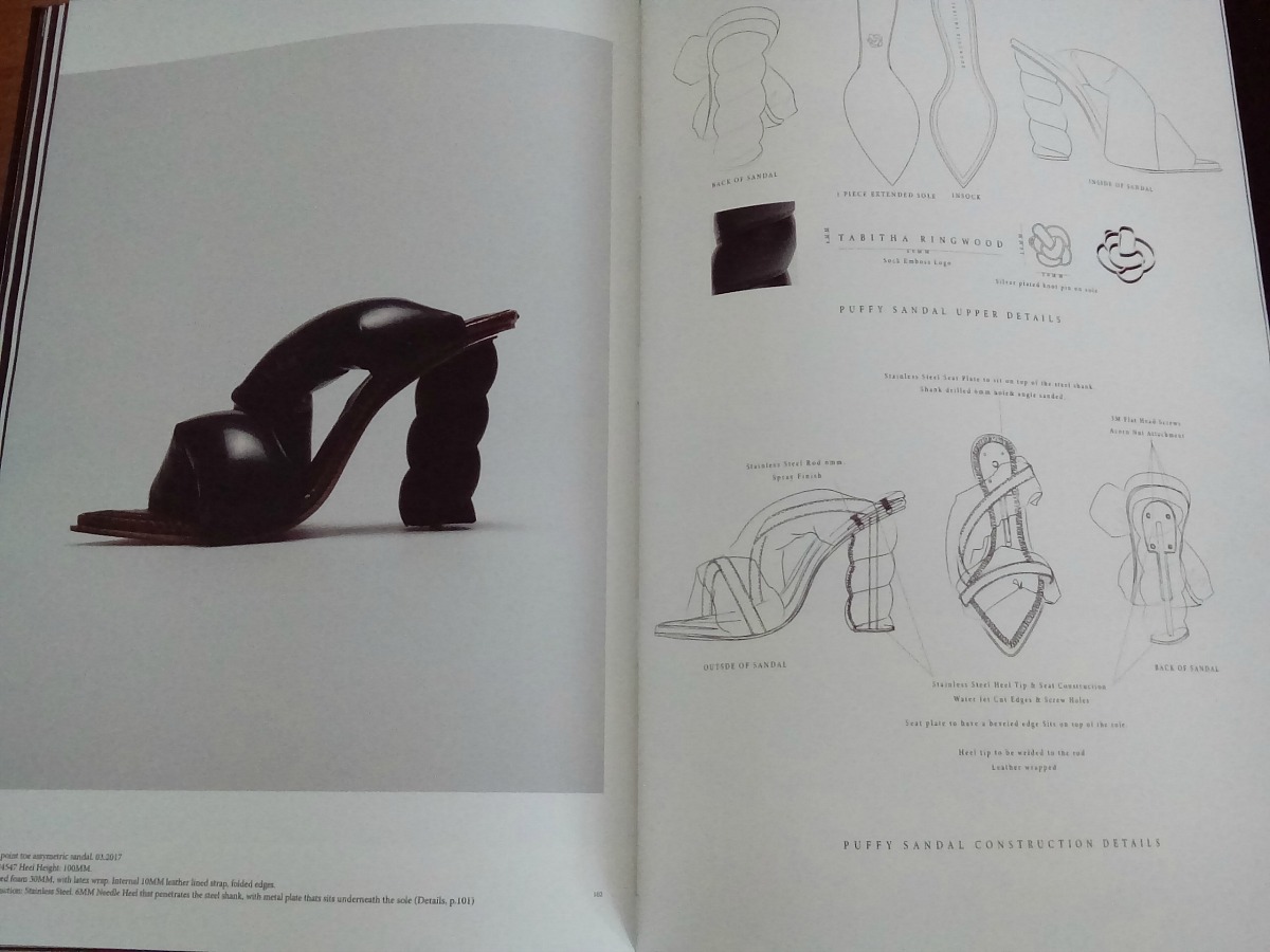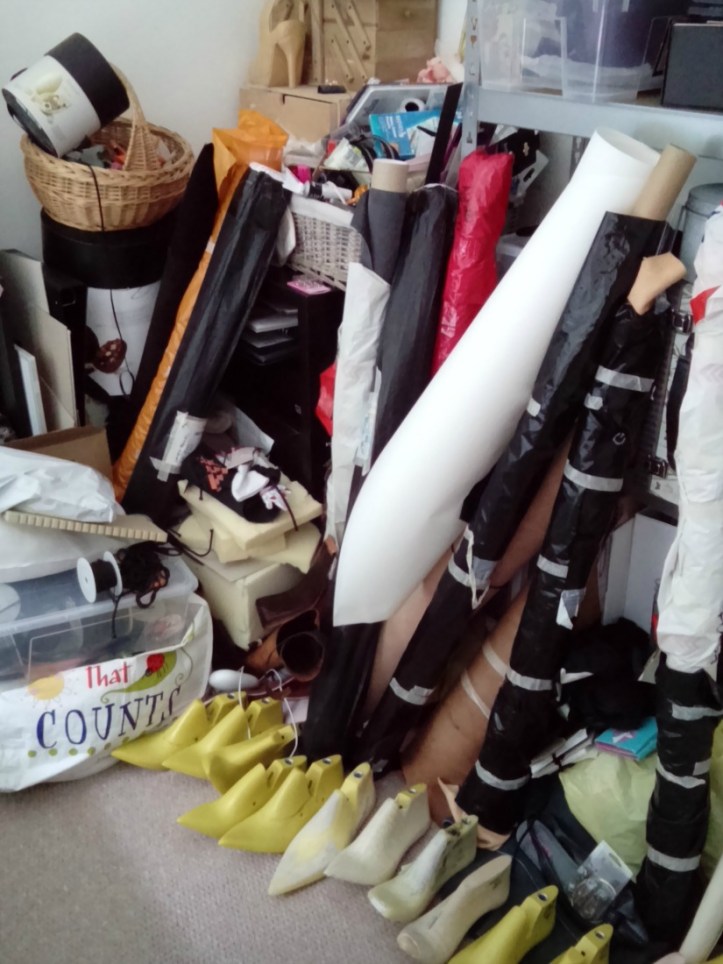 Having met some fierce competition for one of only three places on the MA Footwear course at the Royal College of Art, her two years of study started in September 2016. Hours and hours sourcing unusual materials, burning the midnight (and early hours) oil, attending workshops and lectures on other disciplines such as millinery, accessories and 18 months later her dream of achieving a Masters has been achieved. Sam and Tabitha’s flat has become an extension of the University workshops – not that I mind – I love watching her work and looking through her materials. It’s like Aladdin’s Cave for me, crystals, threads, swatches of all sorts of fabrics and materials.