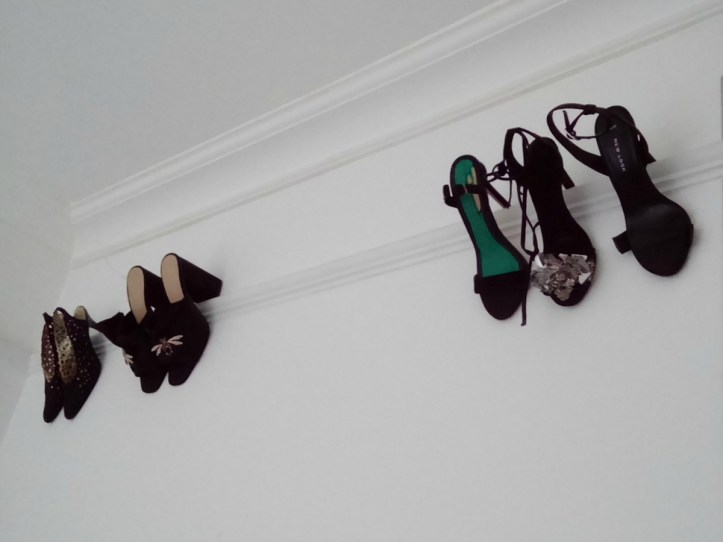 Tabitha‘s installation was one of only two from Footwear. She and Sam had gone to huge trouble to hang what was a very heavy latex curtain as the back drop for her shoe collection. She had three plinths all with shoes on and one bar stool. Two of her three assistants lifted the shoes from behind the latex curtain to show them to the passing guests. It seriously looked like they were floating around.