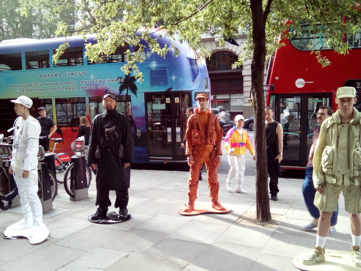 The Press Release from the RCA which I managed to read through said that the Show was going to be a distinct departure from the traditional catwalk. It had a futuristic feel and the students had experimented with virtual reality, science, electronics and sustainable materials. Garments for space tourists, accessories grown from human sweat and seamless clothing were just some of the highlights.