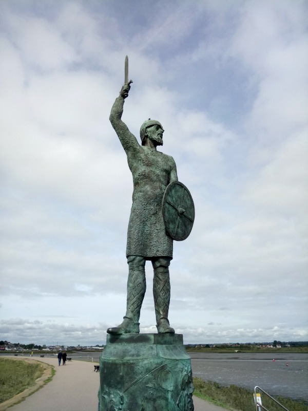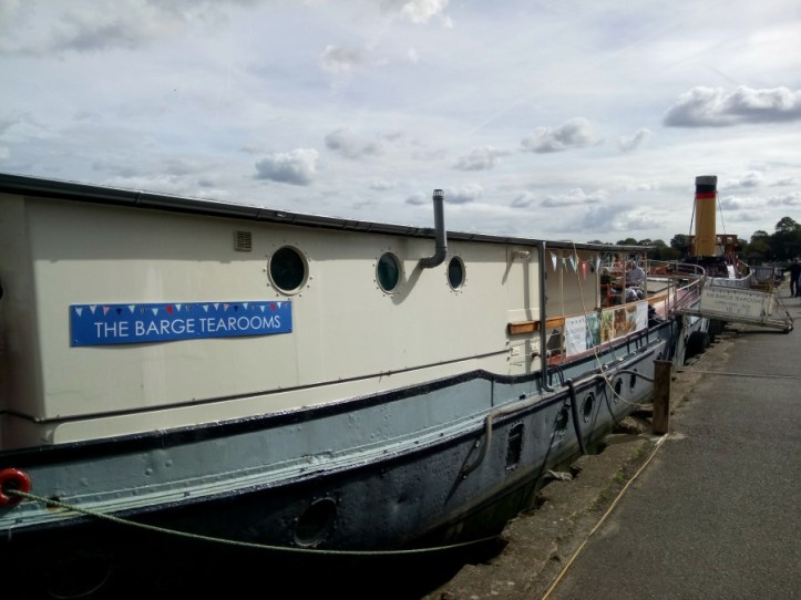 We took a walk along the estuary promenade to a statue. The plaque said it was Byrthtnoth and he died in 911 at the Battle of Maldon. Quite imposing. On our return walk we saw a barge moored on the quayside that had been converted into a cafe/restaurant. With the sun shining and plenty of outside seating on the deck how could we resist?