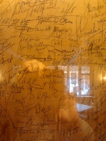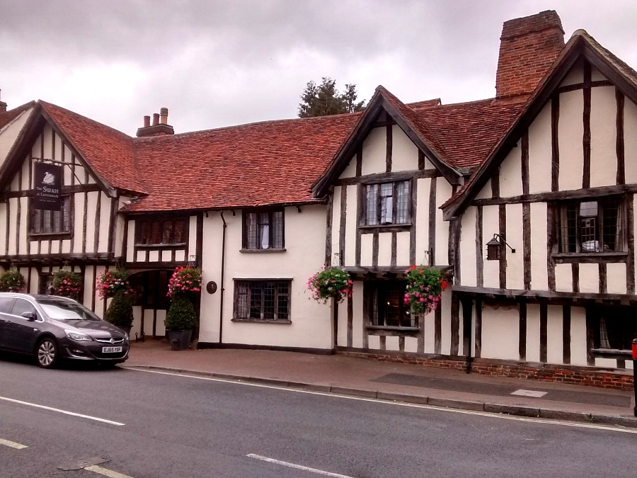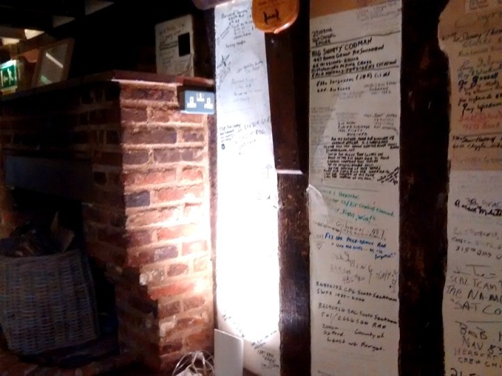 It is such an impressive town. We parked near the church, St Peter and Paul’s. It similar in some ways to the church in Long Melford but what I liked was the feel that it was used not just for services. It had a little gift shop selling both religious and local mementos and a second hand book stall run on an honesty basis. We then took a wander past the many many medieval homes, market square, shops, inns, the Guild Hall which were overwhelming. I always wonder who lived in each home and what life was like for them. The Tourist Information office had a large display about Lavenham Airfield built on what was originally farmland. It was ready for use in April 1944 and was the base for American heavy bombers (487th Bombardment Group (Heavy) to give them their proper title). The airfield has now reverted mostly to farmland and is privately owned although the control tower is being restored. However, in The Swan Hotel, on the High Street, is a bar called The Airmens’ Bar where the crews and ground staff used to drink. There are names, ranks, messages etc written on the walls which we might be interested in. We had to go!
