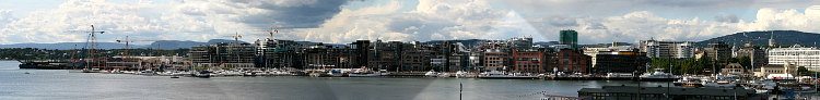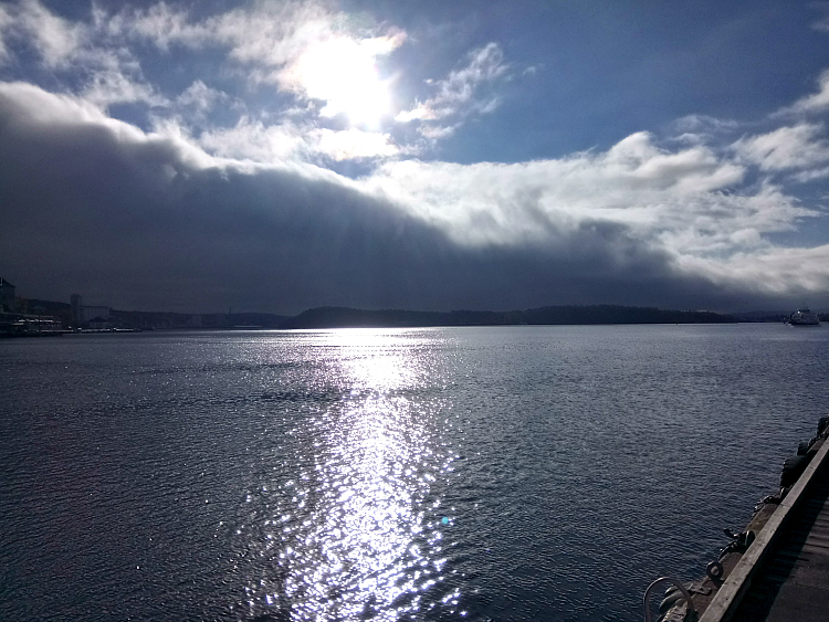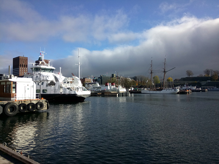 The area to the west of the main harbour in Oslo is called the Aker Brygge and is an area full of modern waterfront apartments and trendy bars and restaurants. Previously the shipyard area it is now one of those desirable, cool places to live and great for a wander. It must be a sight in the height of the summer but as we walked all the way to the end the weather started to change and some big black clouds began to move in.