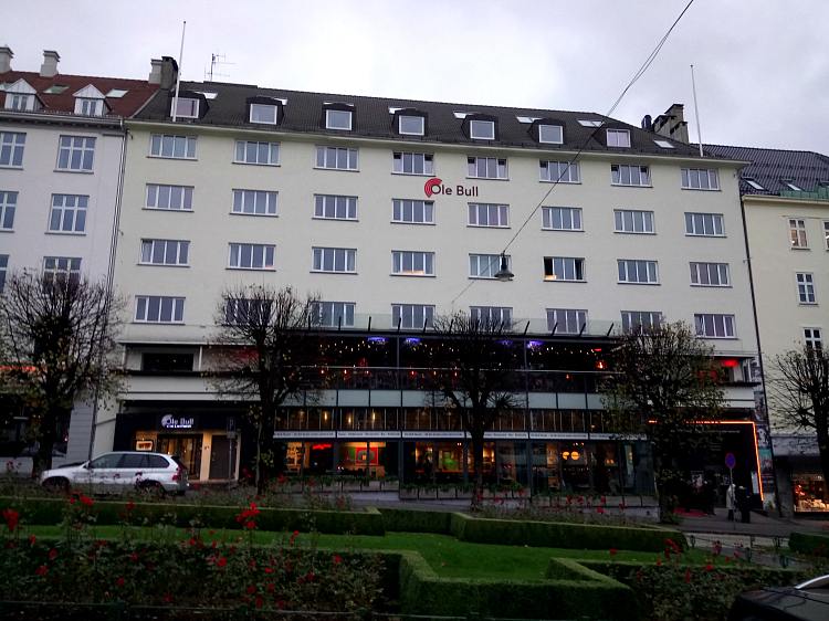 A ten minute walk found us outside our accommodation. Being smart planners and very conscious of prices to eat out, we had decided that an apartment where we could cook would be the best option. I kept thinking we had booked the Old Bull Apartments (as in the the Old Bull and Bush!) but I was soon to discover that Ole Bull was a famous Norwegian violinist and composer. Allegedly on a par with Paganini so how wrong was I?