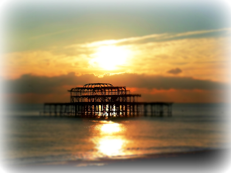 The second one to be built was the West Pier which was built in the boom time of pleasure trips to the seaside. It was extended in 1893 and a concert hall was added in 1916. Day-trippers and holidaymakers enjoyed the pier until the big storm of 1987 damaged the structure. For safety reasons a section of the pier was removed in 1991 to make it inaccessible. Another storm in 2002 resulted in partial collapse. The final chapter of the story is when the pavilion at the end of the pier caught fire in both March and May of 2003. Fire fighters were unable to reach it because of the collapsed and removed walkways. Fire investigators couldn’t inspect the site but it was thought to be arson. The pier was deemed beyond repair and now it has become more of an art feature that is slowly being reclaimed by the sea.