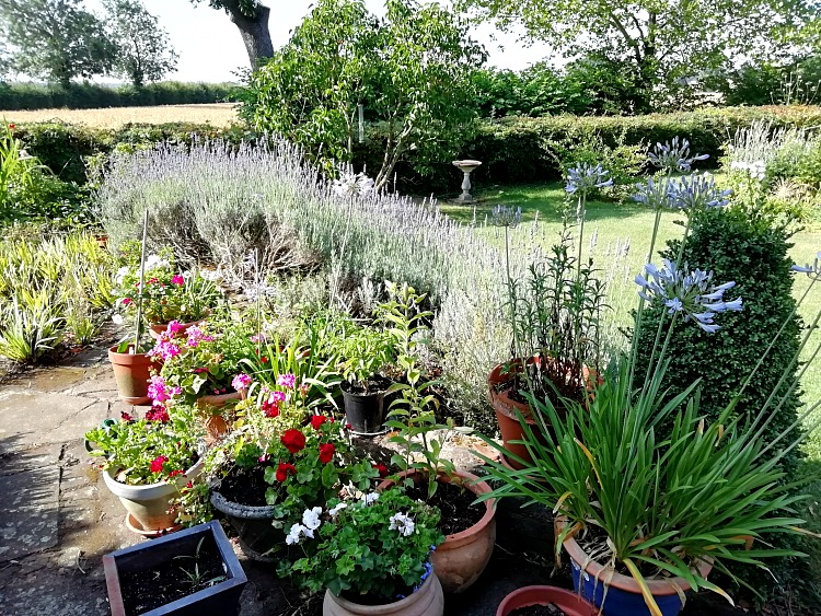 Our visit coincided with the mini heatwave and the hottest day on record and it was a matter of just trying to keep the dogs cool and the extensive vegetables, fruit and plants in pots alive. No walking that day just lots of loafing around for all of us and a mass watering exercise at dusk.