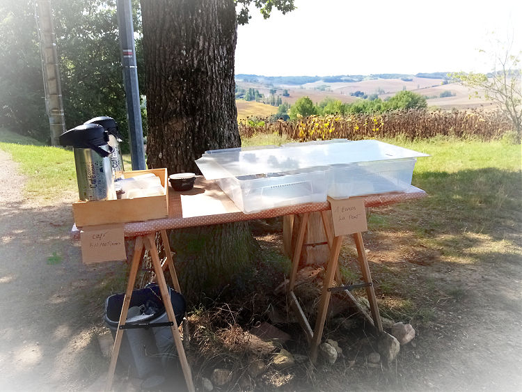 On my last day I managed to don the walking shoes to walk to the next village along the pilgrim route. Flamarens is around 6 km away and with beautiful weather I headed off. It is a walk Jonno and I have done together before so it made me miss his company even more. The views and colours were amazing and kind residents along the trail put out coffee and cakes for weary travellers a small donation. On one section there is even a little shack to shelter from the rain, or in my case the sun and these types of things are scattered all along the 1200 km route.